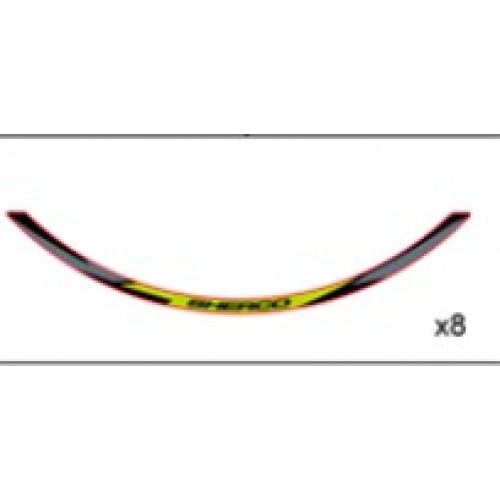 El kit se compone de 8 adhesivos para las dos ruedas